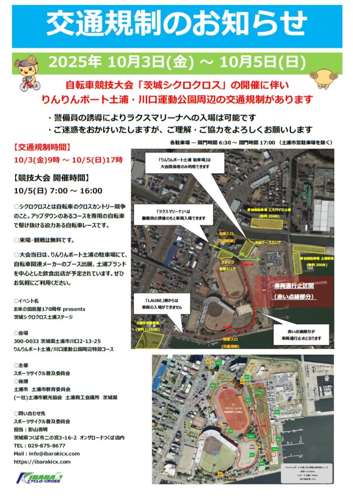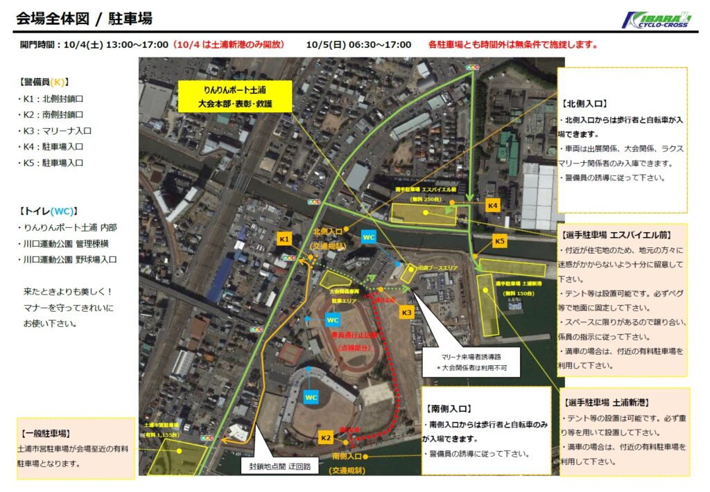 会場周辺の導線について、ご来場の方は必ずご確認下さい。選手・来場者駐車場は十分な台数をお借りしていますが、満車の場合は「土浦市営駐車場」など周辺の有料駐車場をご利用ください。
